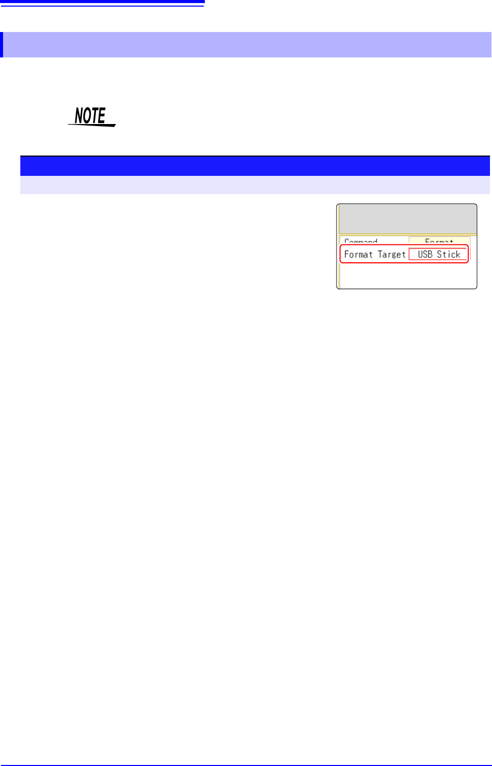 Possible targets for formatting are USB memory stick, and internal memory. During the formatting