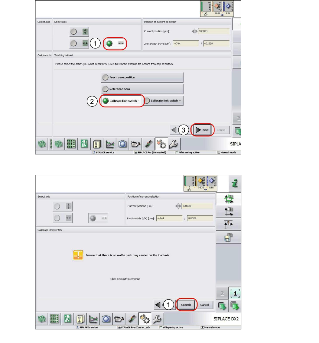 维修手册 WPC5 / WPC6 第 4 页 - 138 使用完成 (1) 确认限位开关触发的新位置。 校准限位开关 + 选择提升轴 (1) 。 选择功能校准限位开关 + 并继续执行与 校准限位开关相同的步骤。