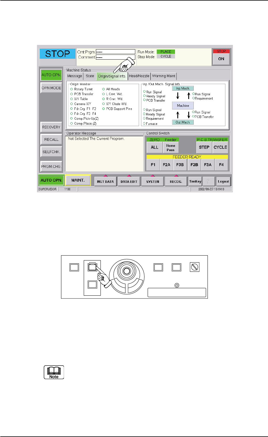 (5) Press the [Origin/Signal Info.] tab in the "AUTO OPN." submenu window . The "Origin/Signal Info." tab sheet opens. Check the origin marks. Fig. 1C20 (6) When the [ST ART] button on the front opera…