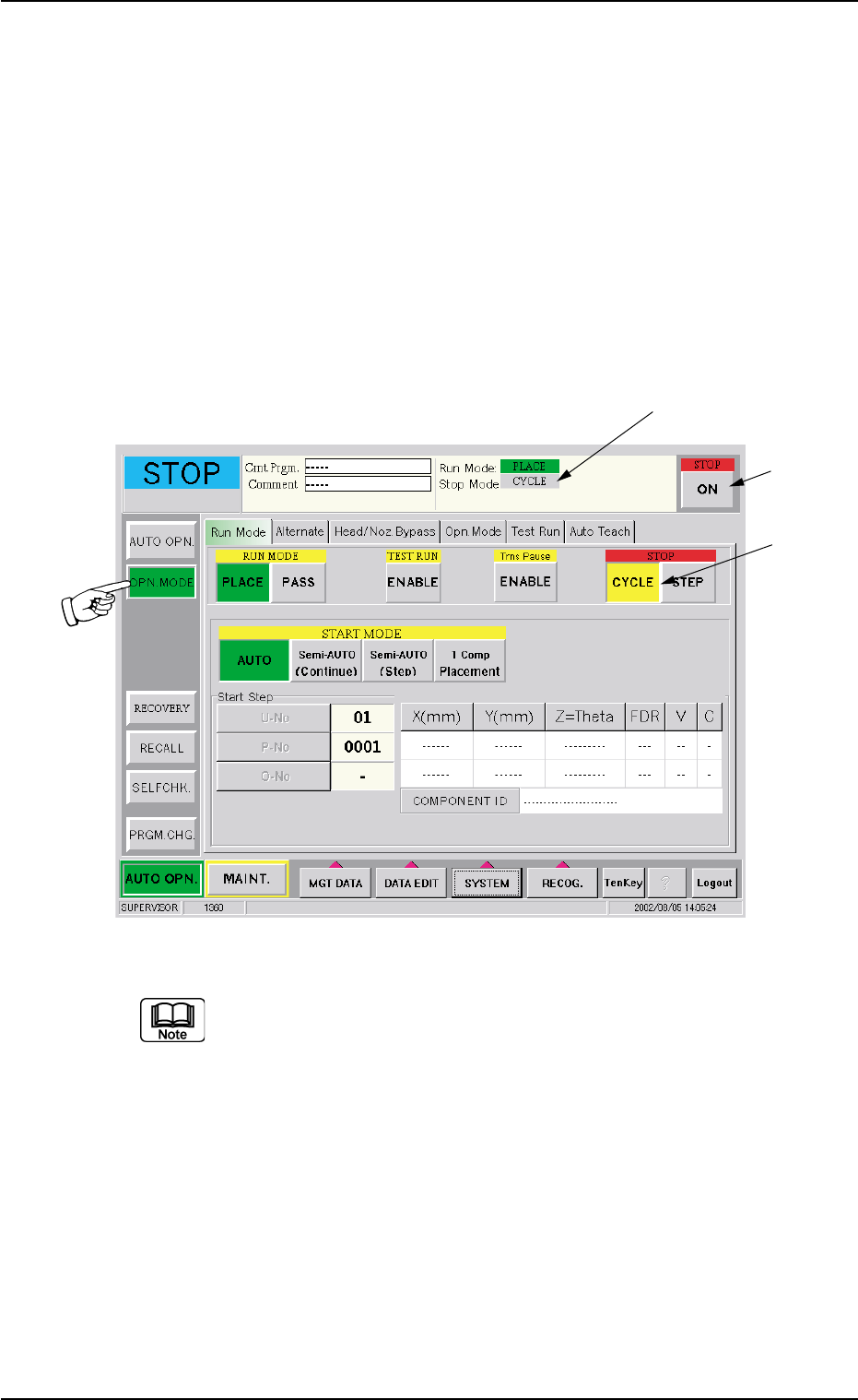 When "STEP" is set as "Stop Mode" (*1), select the [CYCLE]