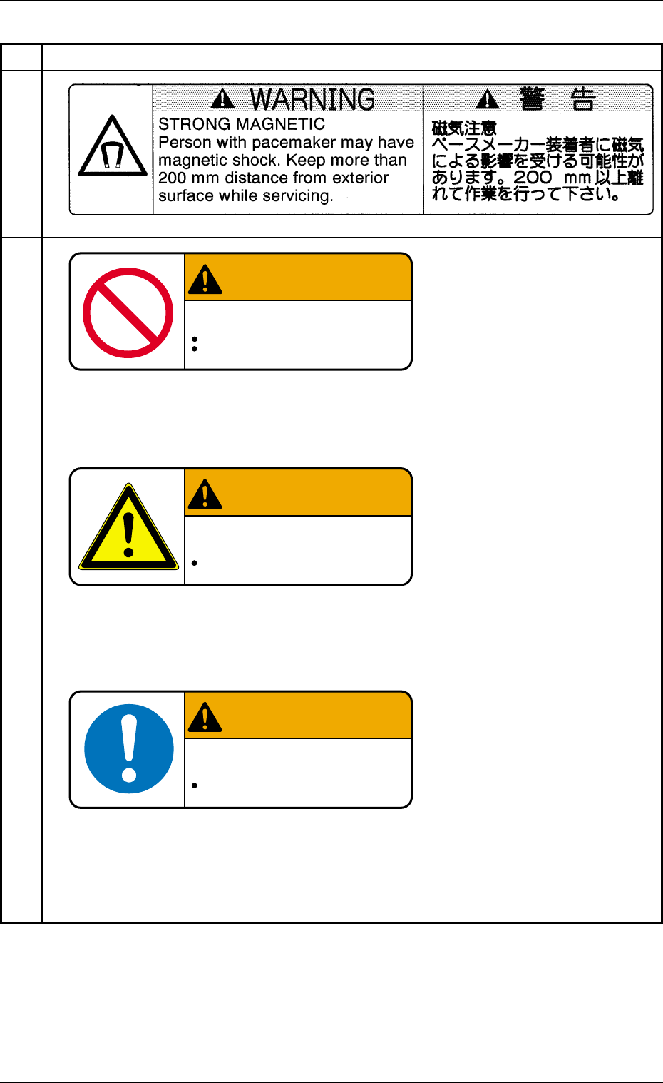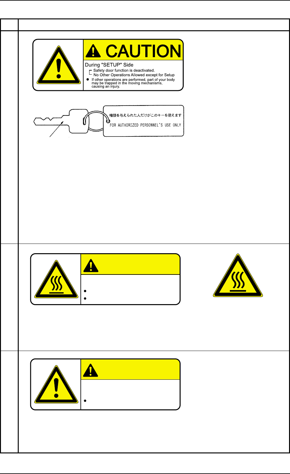 CAUTION CAUTION A burn will result. Hot Surface Do not touch. No . W arning Labels and Description *9 Description • When the [OPERA TION] switch is set to “SETUP” side, the interlock function of the front safety door is …