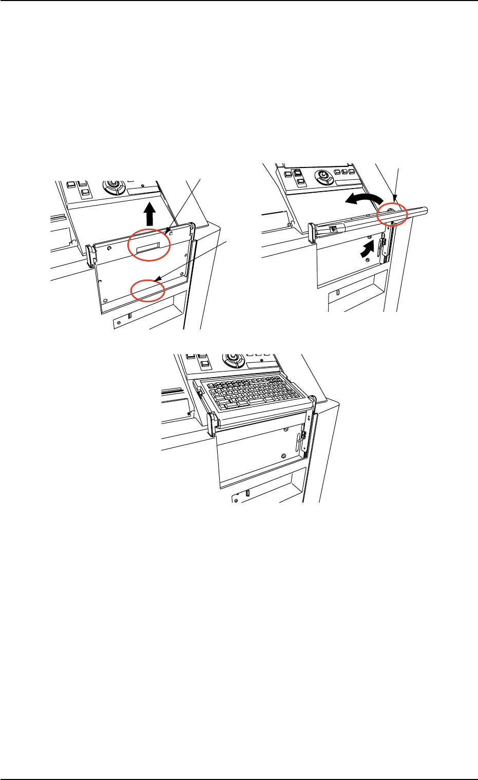 How to set up and store the keyboard • Setup Procedure (1) Hold the A-marked area and lift it up until it clicks. (2) Hold the B-marked area and turn it in the C-marked arrow direction. Fig. 1A12-1 A B B C 2.3 Operationa…