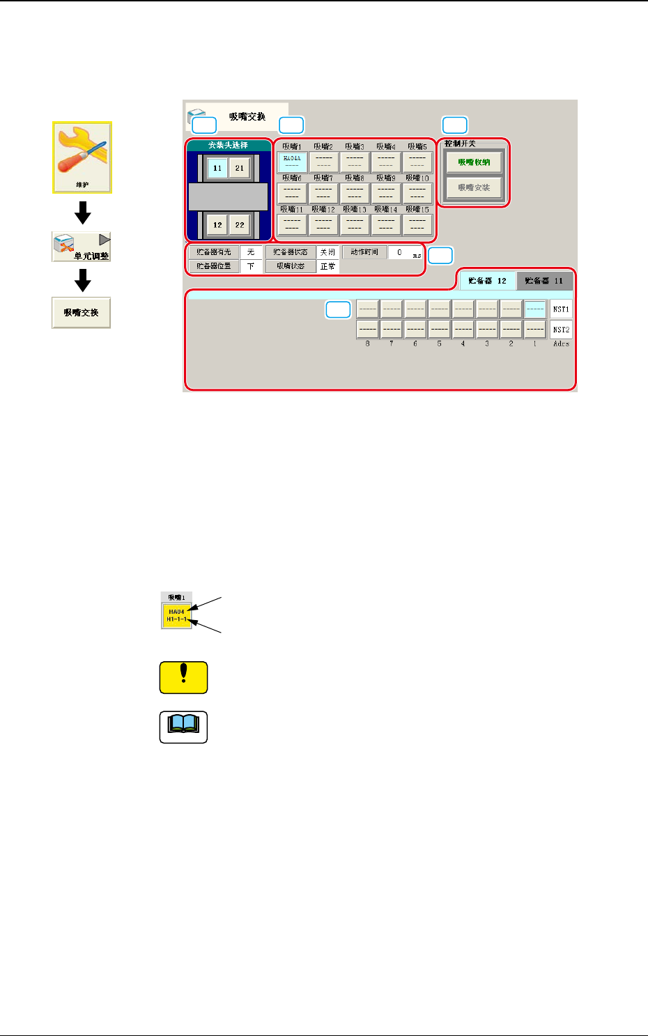按下各吸嘴的相应按钮,选择要交换的吸嘴。