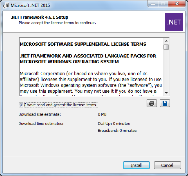 ► Double-click the NetFramework4.6.1.exe file to start installing .NET Framework.