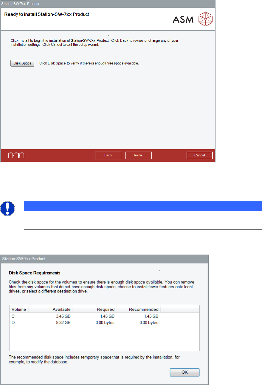 For installation and optimal functionality of the machine later on, a free disk space of at