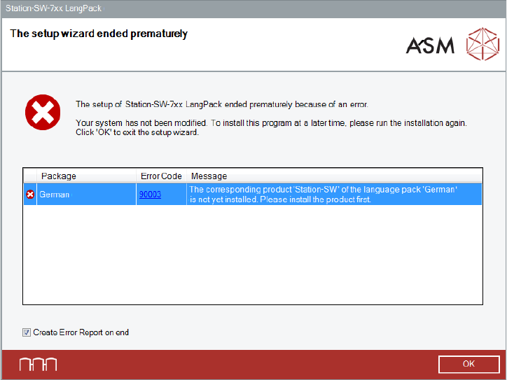 The setup wizard will prompt you to store the Error Report (as zip file).