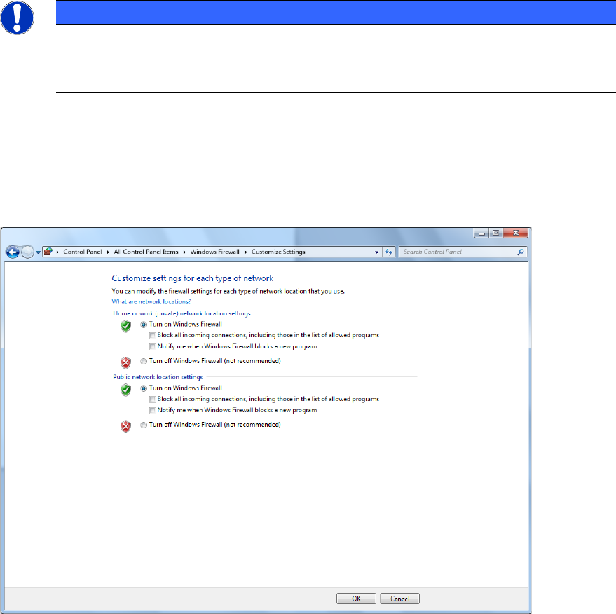 ► Select Start – Control Panel – Windows Firewall – Turn Windows Firewall on or off.
