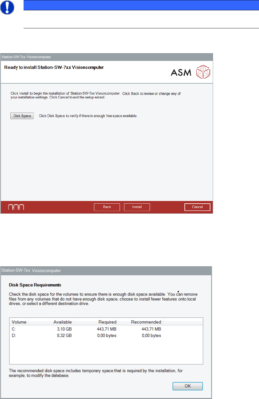 Before installing, you can check the available, required and recommended disk space (per drive) to