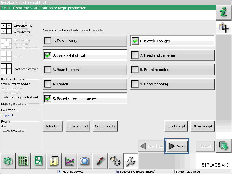 ► Select the calibration steps that are highlighted in the figure and click on Next.