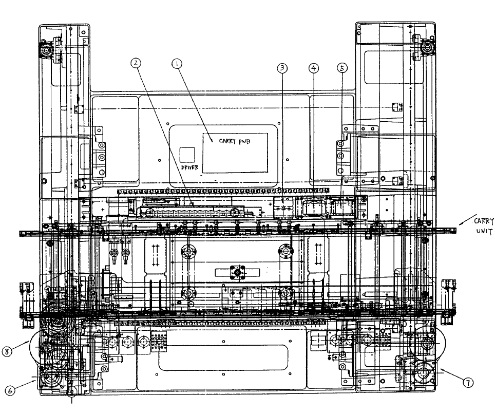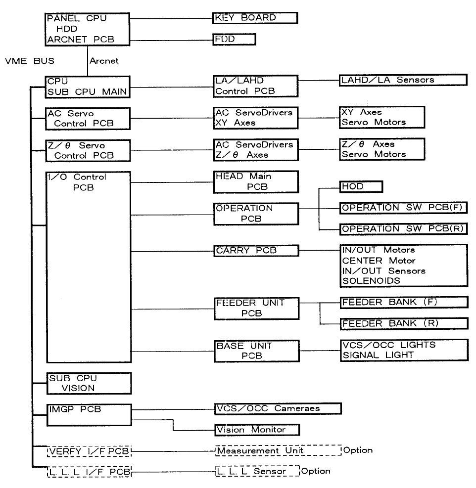 2. Base Superstructure Layout Dia. 17 - 2 - 1 provides a dr awing of the superstructure. Parts Names 1 Conveyor unit (PWB assy ) (5 phase stepping driver) 2 ATC unit 3 CAL light (PWB assy) 4 0.4mm VCS camera & light …