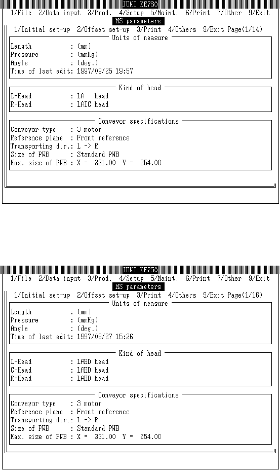 Once password is confirmed, MS parameter input mode is accessed.