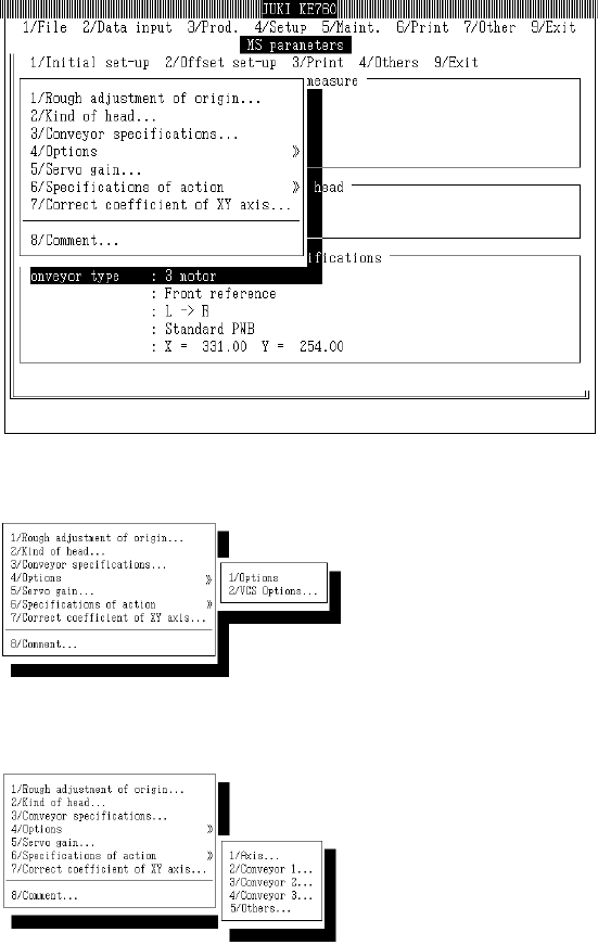 Select [1/Initial set-up] from menu and commands will appear.