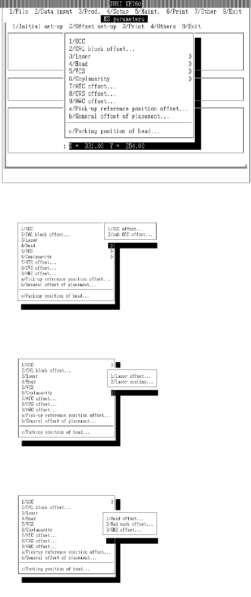 Select "2/Offset set-up" from menu bar and commands will appear.