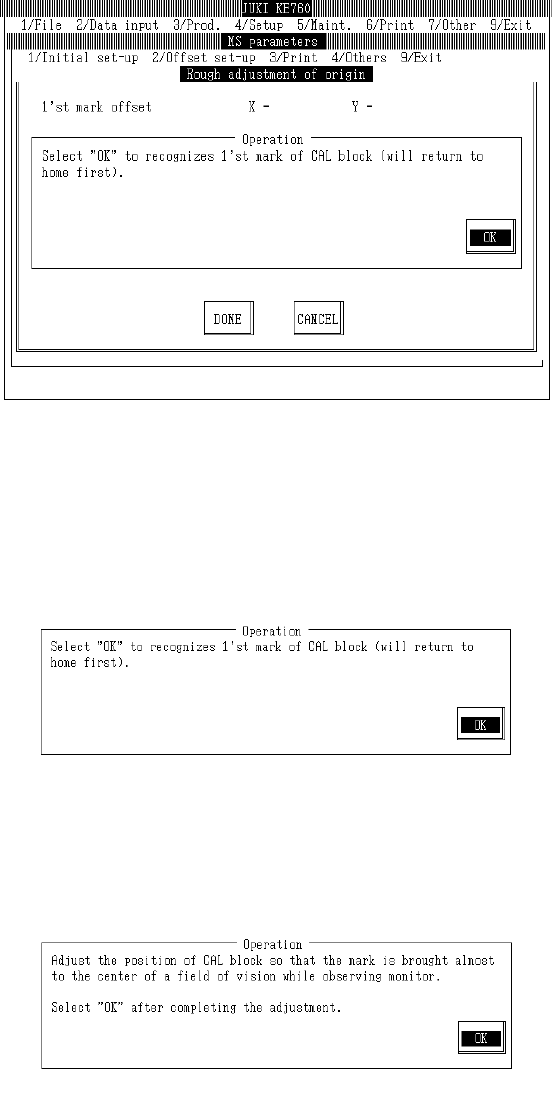 When "OK" is selected, machine returns to home and OCC moves to above CAL block No. 1 mark