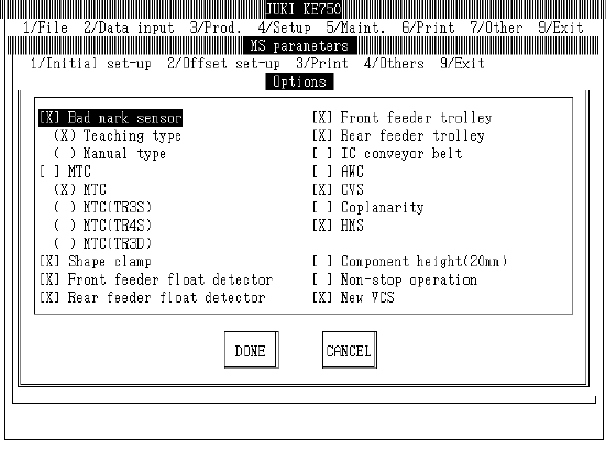 Select "1/Initial set-up" then "4/Options" and the option setting dialog will appear as follows.