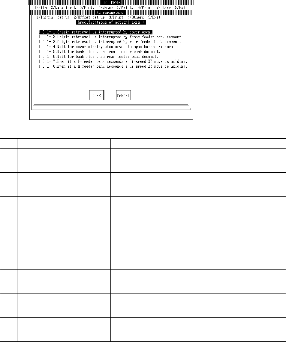 4.6.2 Convey ors Select "1/Initial set-up" then "6/Specifications of action", "2/Conveyor 1" and the conveyor movement spec setting dialog will appear as follows. Select "1/Initial set-…