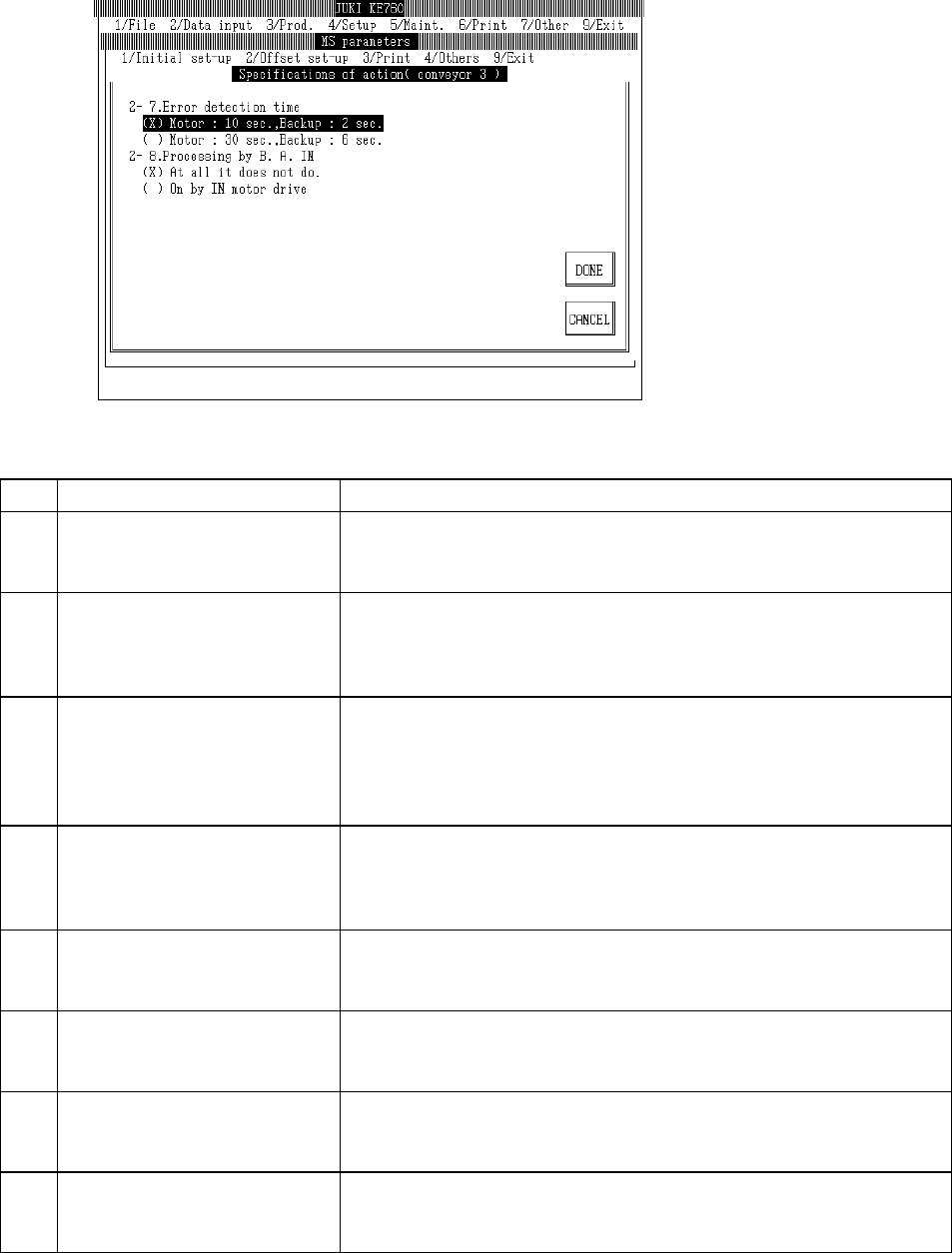 4.6.3 Various Select "1/Initial set-up" then "6/Specifications of action", "5/Others" and the dialog will appear as follows. (1) Setting Items No. Item Contents 1 3 - 1. Invalidate START swi…