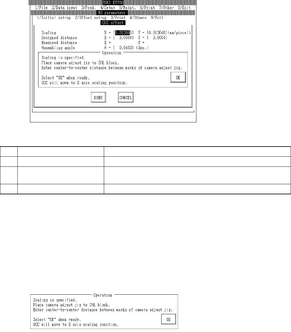 Once reference is set, select "OK" and OCC will move to X axis scaling position. Monitor image when adjustment completed With teaching adjust the monitor cross hair cursor so that it falls near the center of th…