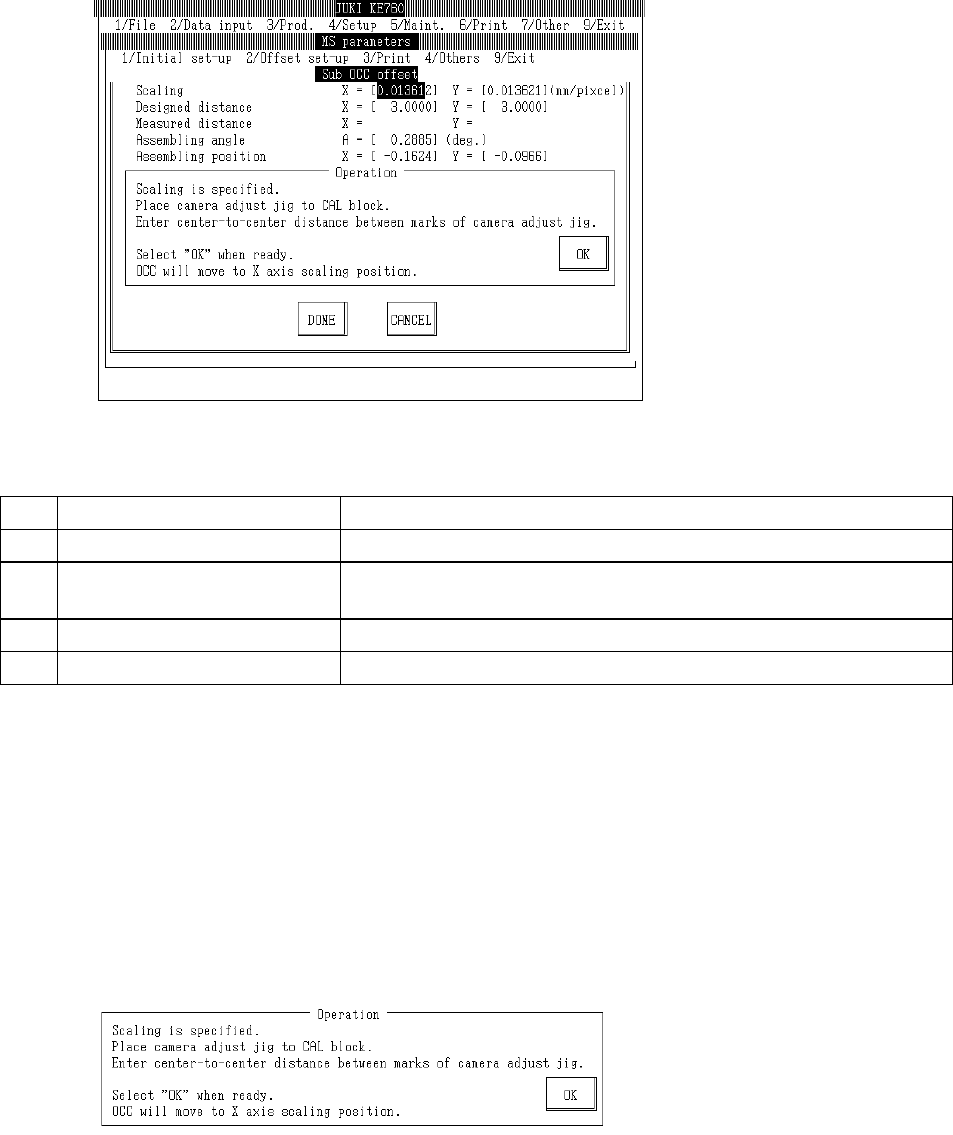 Enter the marked distance of X & Y coordinates of the camera adjustment jig and CAL block.