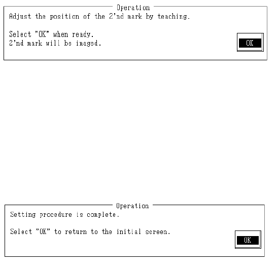 Select "OK" and when OCC will recognize CAL block No. 2 mark position, acquired coordinates