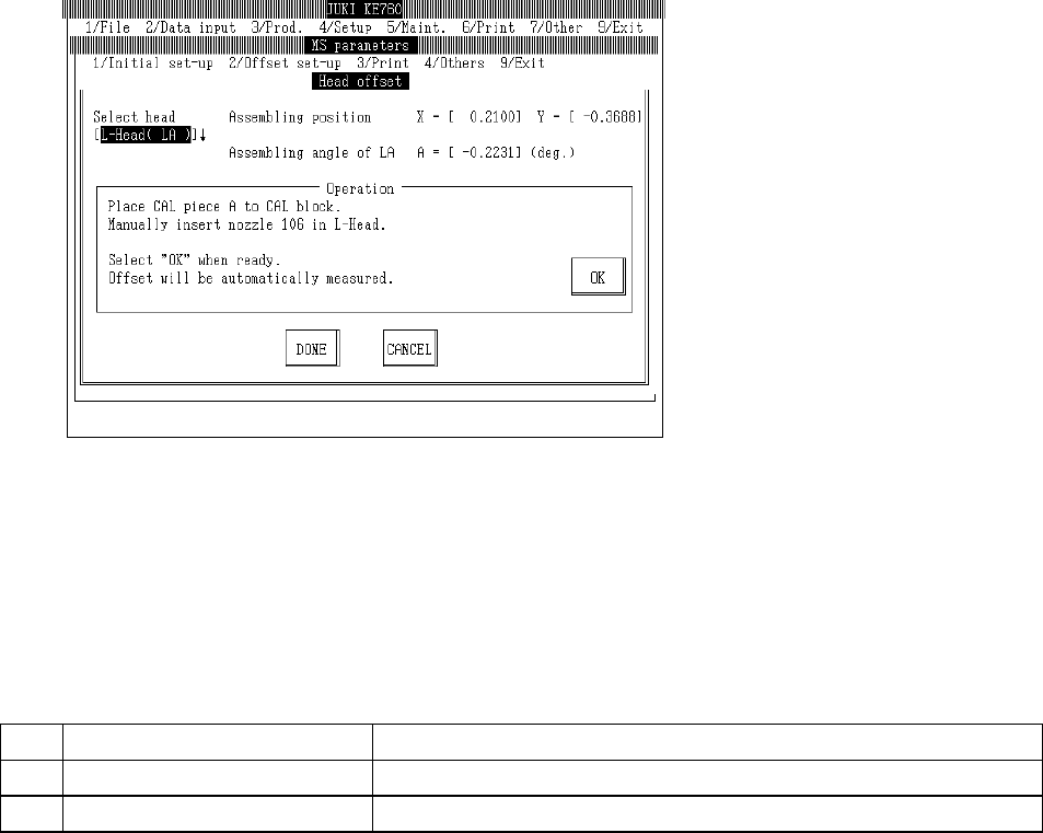 1 Assembling Position Offset value for setting position of each head (OCC std)