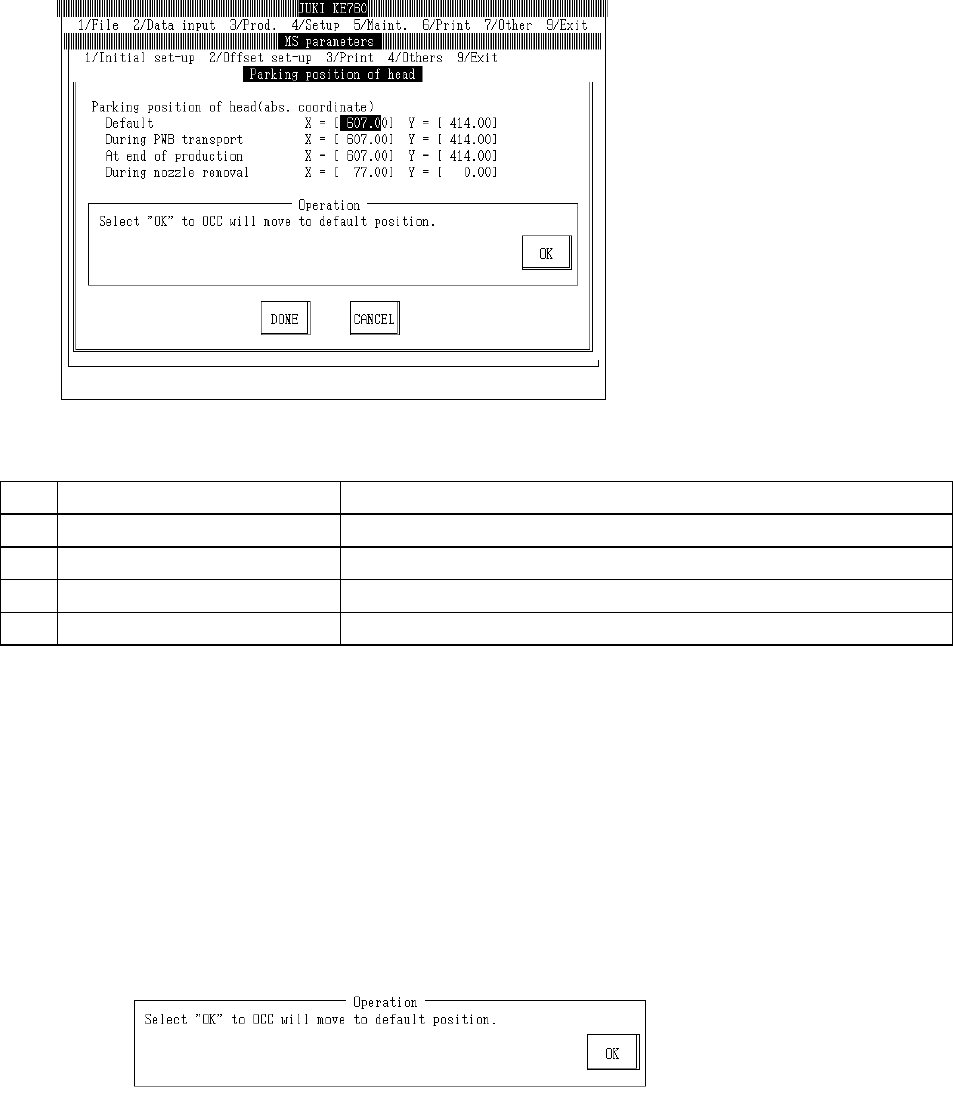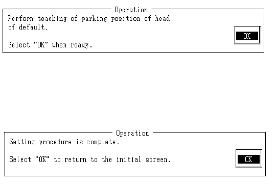 When default obtains default head waiting position, press HOD Enter key. When teaching is completed, default head wait position is modified based on the obtained coordinates. When "OK" is selected, the next scr…
