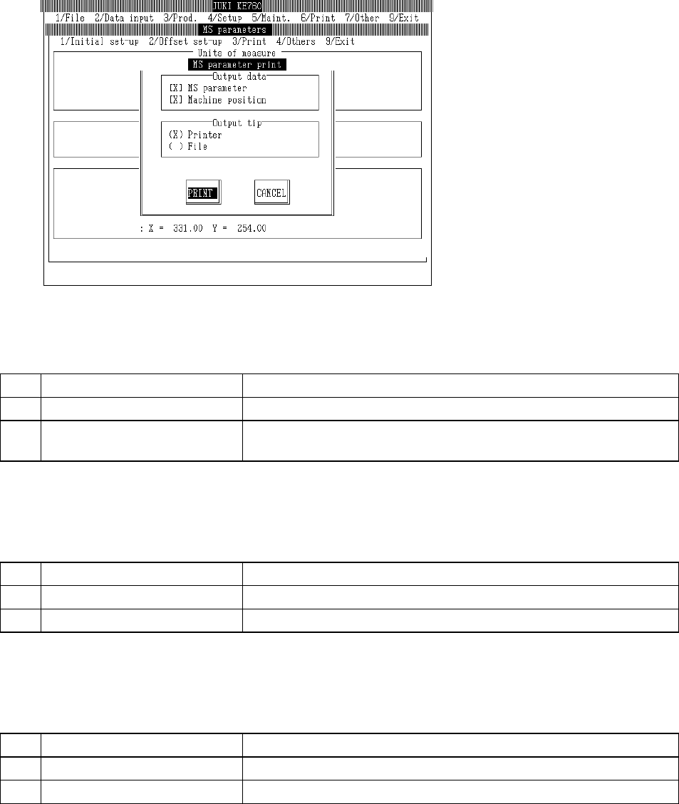 2 Machine Coordinate Values Print MS parameters & assembling position of each unit set in machine
