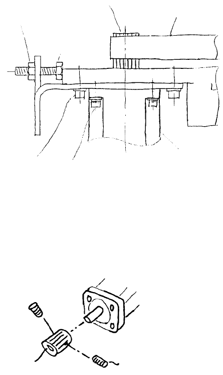 (4) Loosen the 2 stop screws (6) holding motor pulley and remove from θ-axis motor. (Fig. 2 4-2).