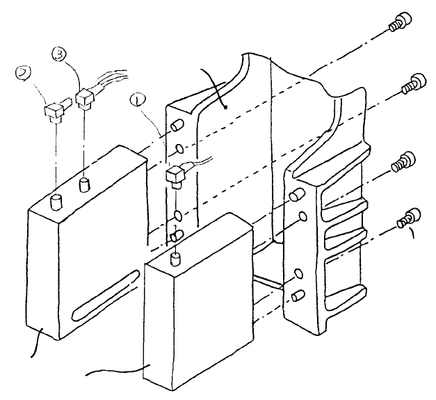 – To replace, remove connectors (1), (2) & (3) and the 4 screws (4).