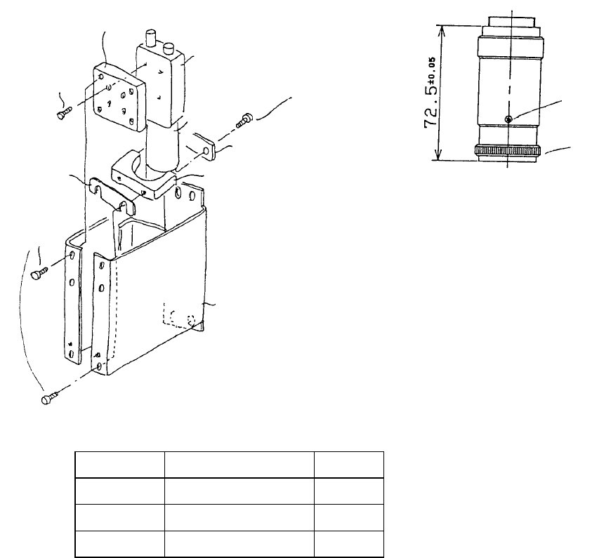2. CCD Camera / Lens Replacement (1) Follow the instructions in 4 - 1 to remove camera unit assy from head plate. (2) Remove SEMS cap screws (1) holding CCD camera block and lens holder to replace. Set lens length at 72.…