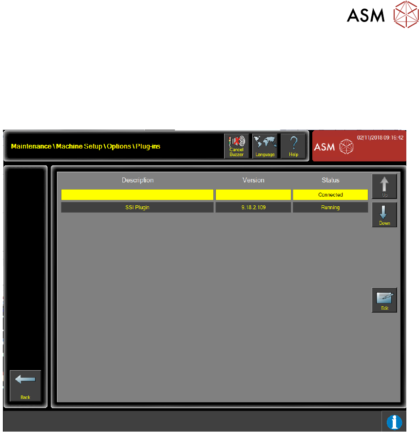 Within the Maintenance\Machine Setup\Options\Plug-Ins menu the following status conditions of
