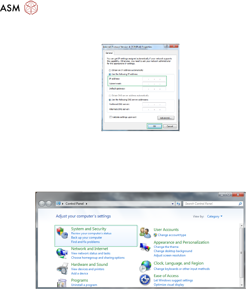 ► Select Use the following IP address radio button and enter the IP address and subnet mask