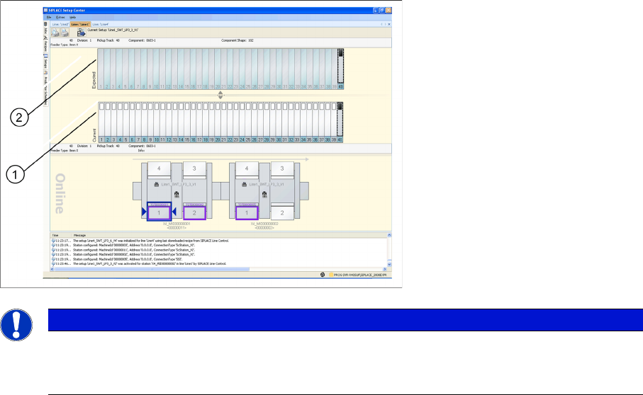 (target setup of Siplace Pro) and actual setup (1) (actual setup at the machine) at a glance and to run