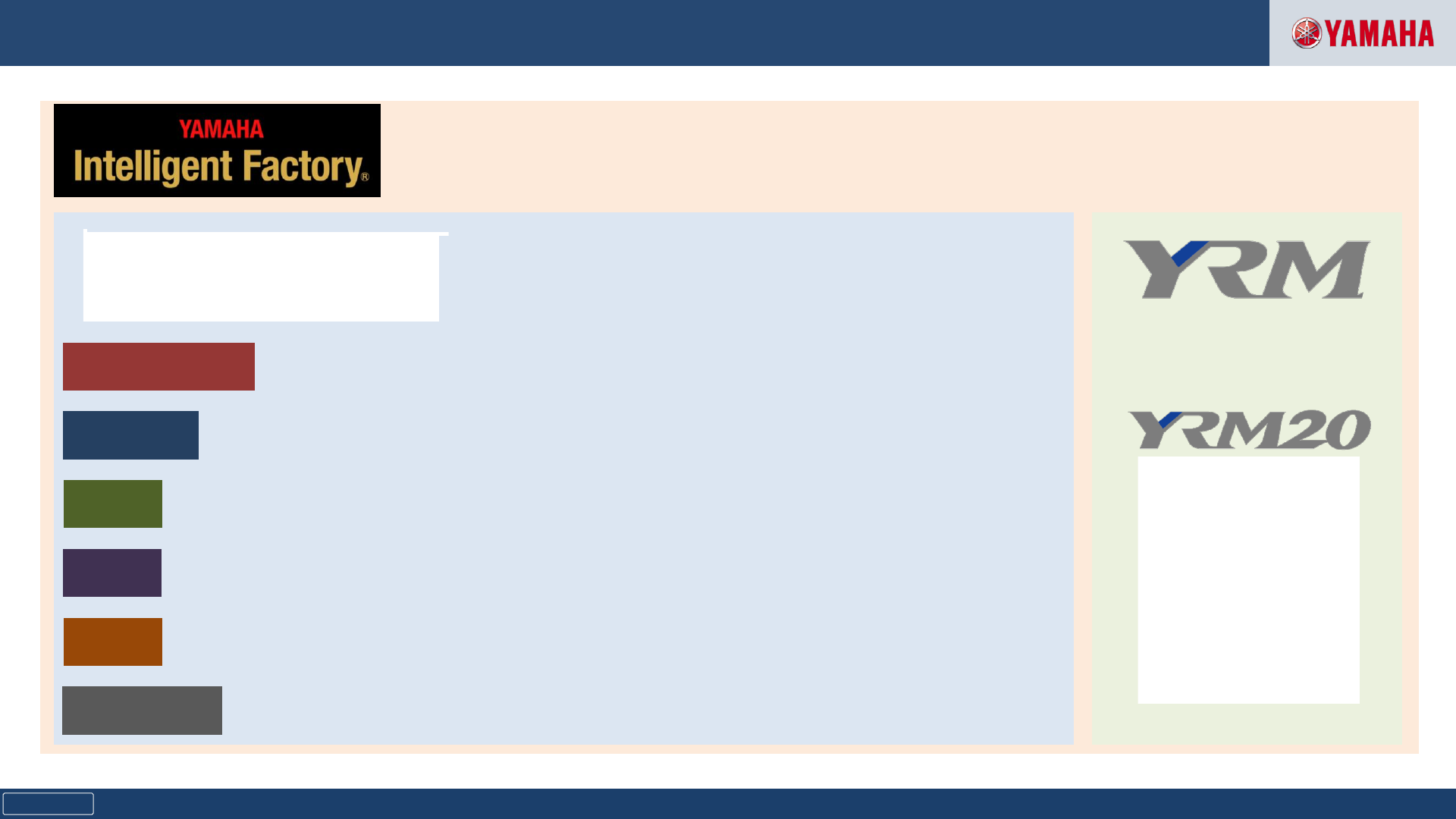 ヤマハ発動機株式会社 ソリューション事業本部 ロボティクス事業部 Copyright © Yamaha Motor Co., Ltd. All Rights Reserved. Confidential SJP0020B00- 00 Part of Intellig ent Factory 智能工厂的 组 成部分 YsUP - Yam aha’s Unique & Proven solutions- 雅 马 哈唯一且行之有效的解…
