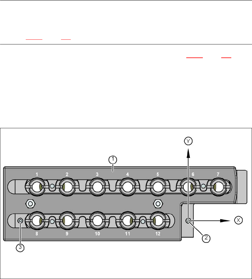 Abb. 6.1 - 21 Pipettenmagazin - Garagennummerierung, Marken zur Bestimmung der Position und der Winkellage