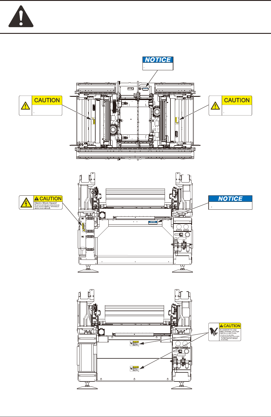 Safety Precautions Safe-19 1OM-1751 1305-002 5. Alert Labels 3 4 4 4 4 3 4 4 4 4 Front View of Machine Front View of Machine (9) (9) (16) (4) (6) (18) Do not put any object on this section. T his might damage t he machin…