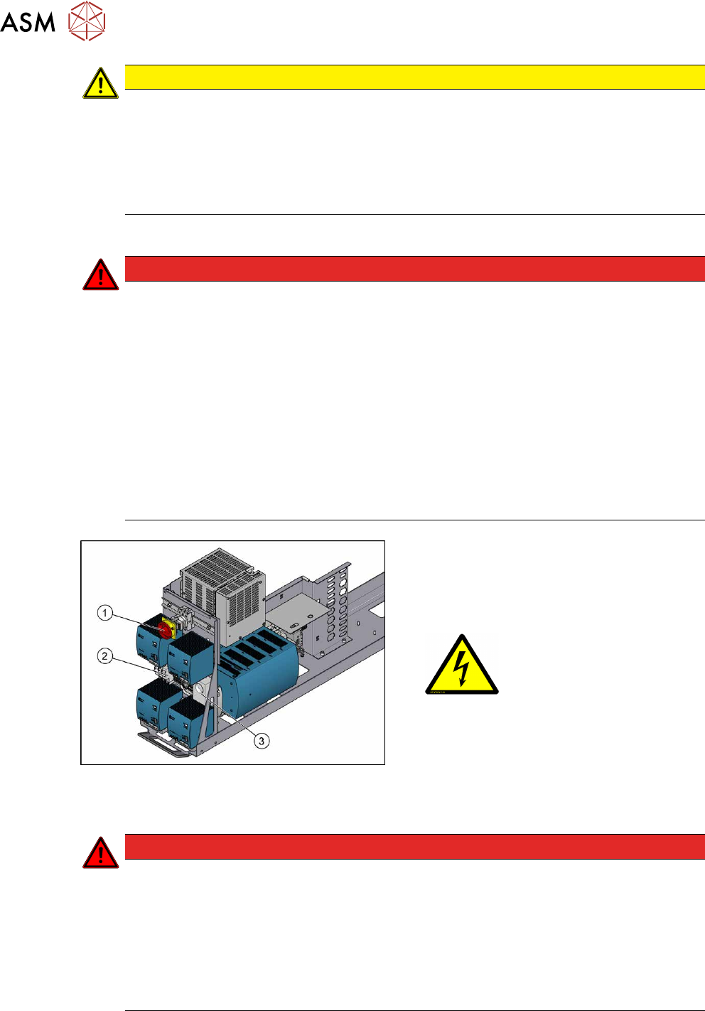 ► Work on the power supply and the contactor safety breaker (CSB) must only be car-