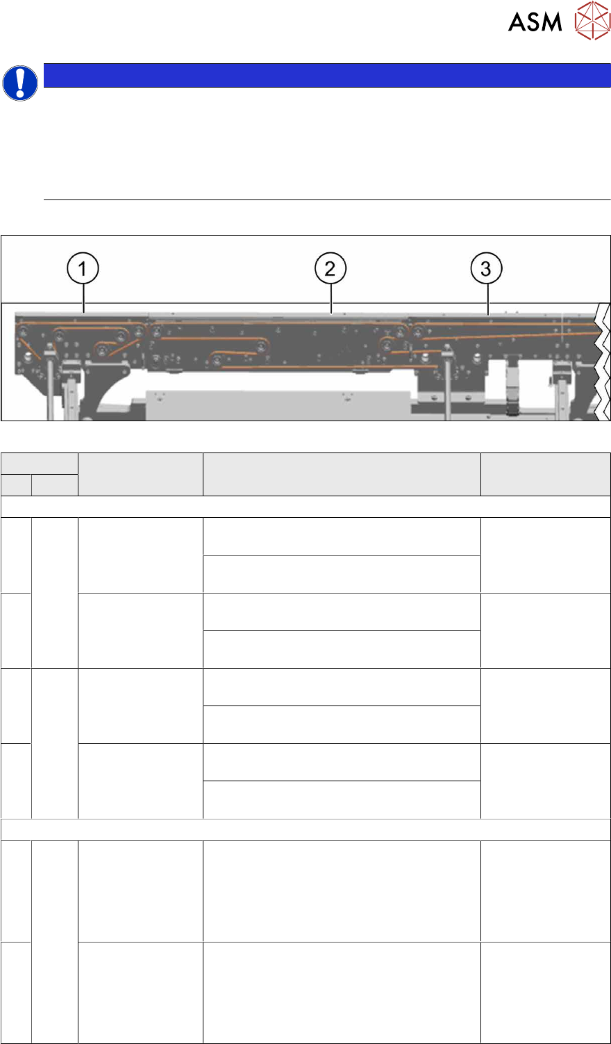 7 Conveyor 7.7 Clamping Plate, Clamping Rails and Belt Guidance 212 Service Manual SIPLACE X-Series S (from Hxxxx) 01/2021 Side panel (1) Input area (2) Placement area 1 (PA 1) (3) Center PA1 DC SC SIPLACE X4i S A Fixed …