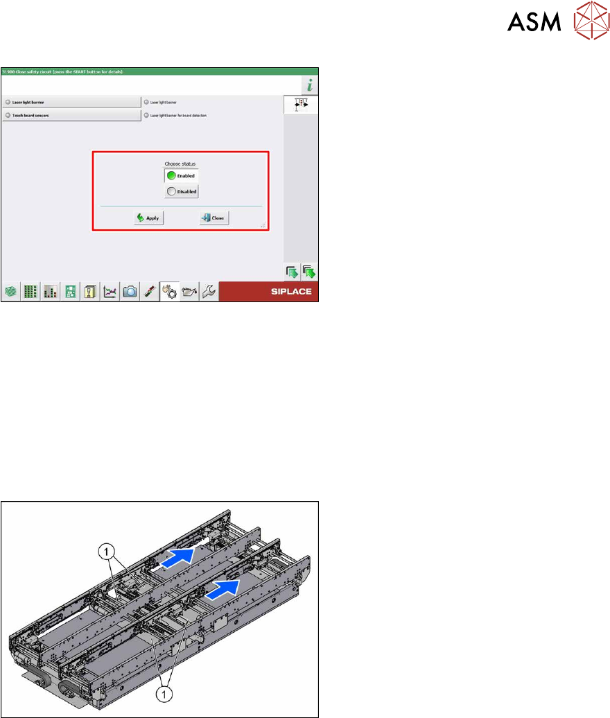 7 Conveyor 7.9 Boards Service Manual SIPLACE X-Series S (from Hxxxx) 01/2021 241 Fig.318: Teaching the sensors ► Select Laser light barrier at conveyor track 1. Enable Teach board sensors and press the Start button on t…