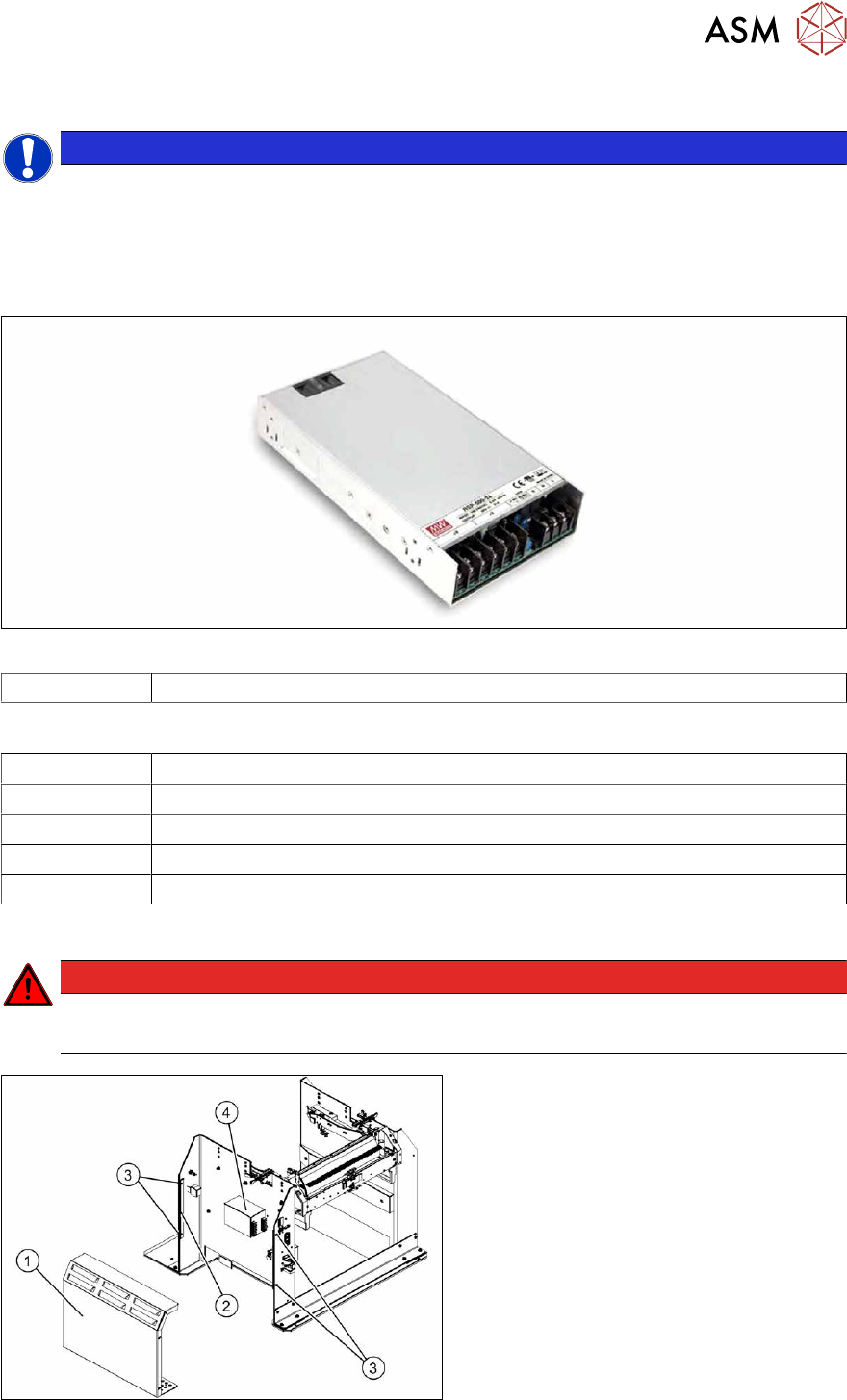 9 Component feeding 9.4 Docking Station for Component Trolley 340 Service Manual SIPLACE X-Series S (from Hxxxx) 01/2021 Fig.479: Removing the power pack ► Disconnect all electrical connections (4) to the power pack (…