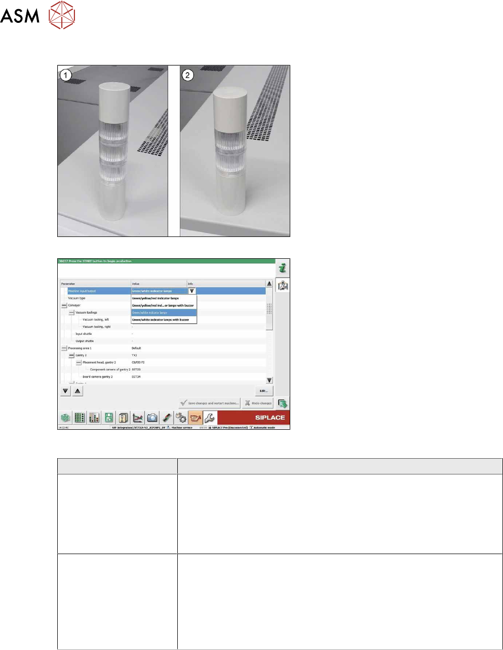 4 Electrics and control system 4.5 Indicator lamp Service Manual SIPLACE X-Series S (from Hxxxx) 01/2021 73 4.5 Indicator lamp 4.5.1 Replacing the indicator lamp/module Parts Fig.81: Indicator lamp 1 03162662-xx Basic m…
