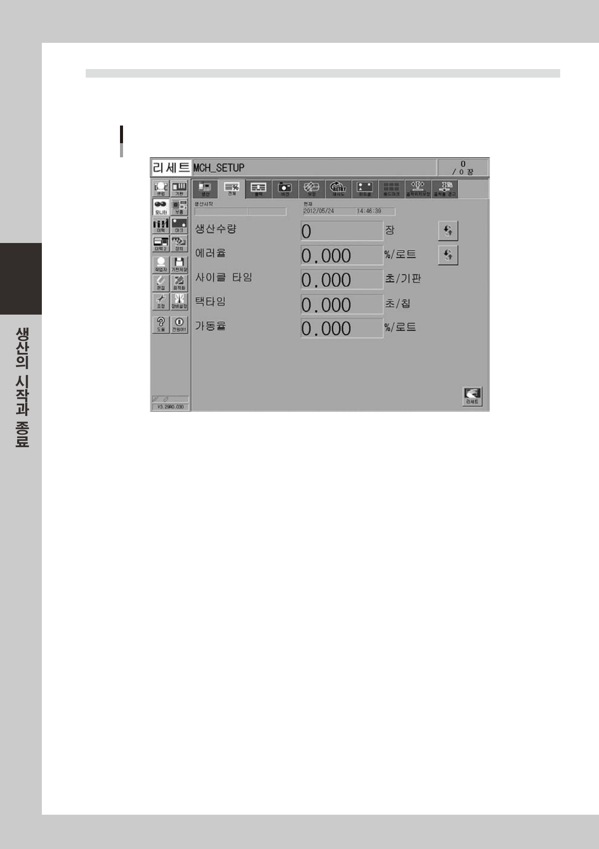 생산데이터의관리정보를리세트합니다 .생산데이터의관리정보에는 ,화면에표시되어있는각데이터및현재의생산수