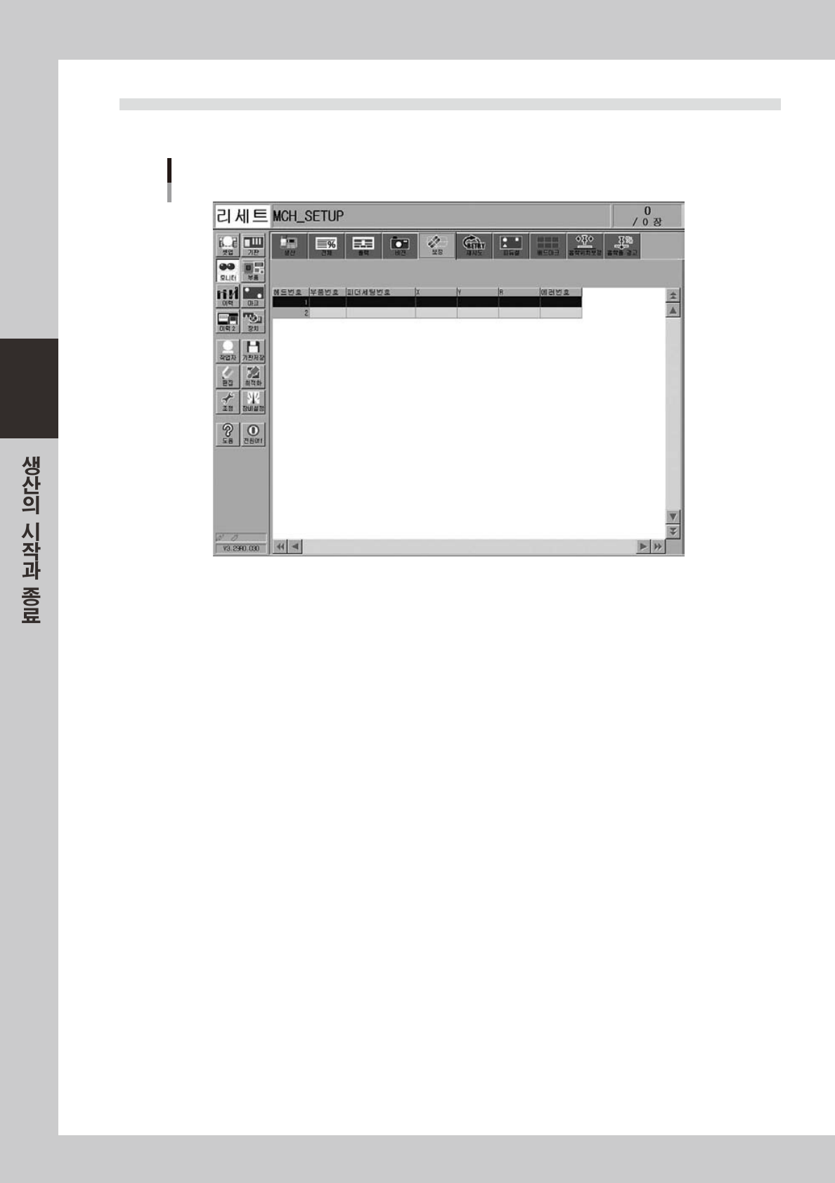 자동 운전중인 부품인식 결과의 보정량 , 에러코드 등이 일람표 형식으로 표시됩니다 .