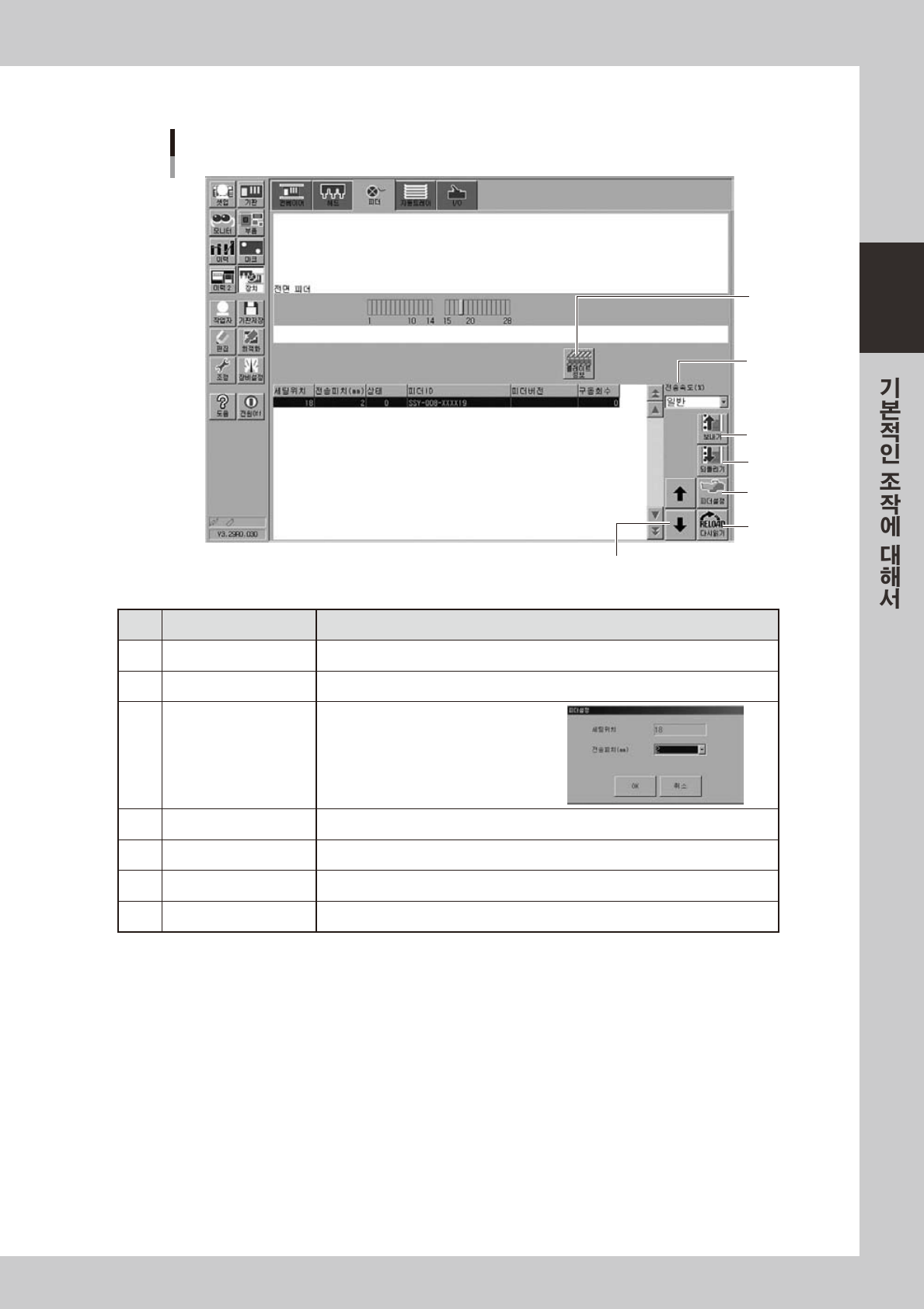 「장치」ー「피더」화면