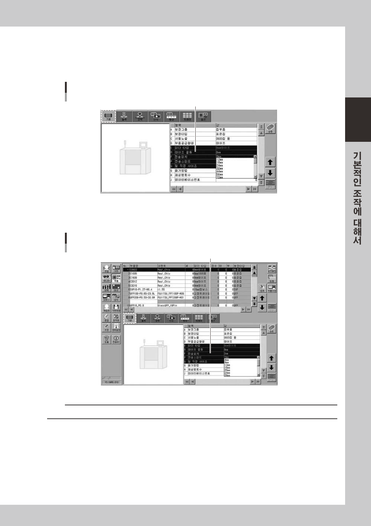 2-38 2 3 부 품데이터 화면을 표 시해서 , 부 품 을 선 택합 니다 . [ 부품 ] 버튼 을클릭 해서부품데 이 터화면 을열 고 ,화면상 부 의부품리 스트 에 서대 상부 품을선 택 해주 십시오 . 부품데이터 화면 2822 4 -N8 - 0 0 4 기본정보 화 면을 선 택합니다 . 「기 본 」탭 을클 릭 해서기 본 정 보화면 을선 택 합니다 . 5 「부 품 공 …