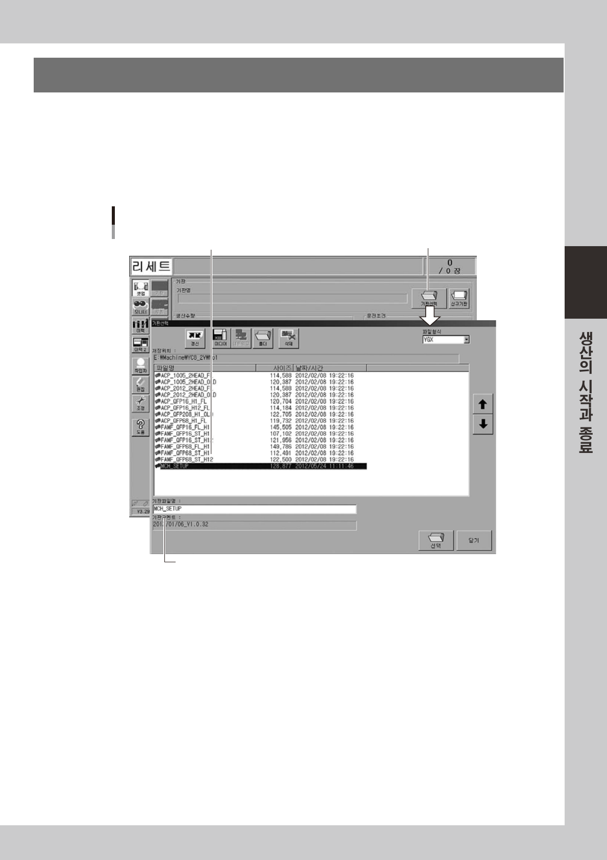 제 3 장 생산의 시 작 과 종료 목차 1 . 생산 을 시작한 다 3- 1 1 . 1 「도중 부 터 운 전」을 사 용한다 3- 6 1 . 1 . 1 저 장되 어있 는데 이터읽 기 3- 7 1 . 1 .2 탑 재플래 그의편 집 3- 7 2. 생산 을 종료하 고 전 원을 OFF 한 다 3- 8 3. 생산 중의 모니터 표 시 3 - 1 0 3 .1 생 산 3 -1 0 3.2 전 체…