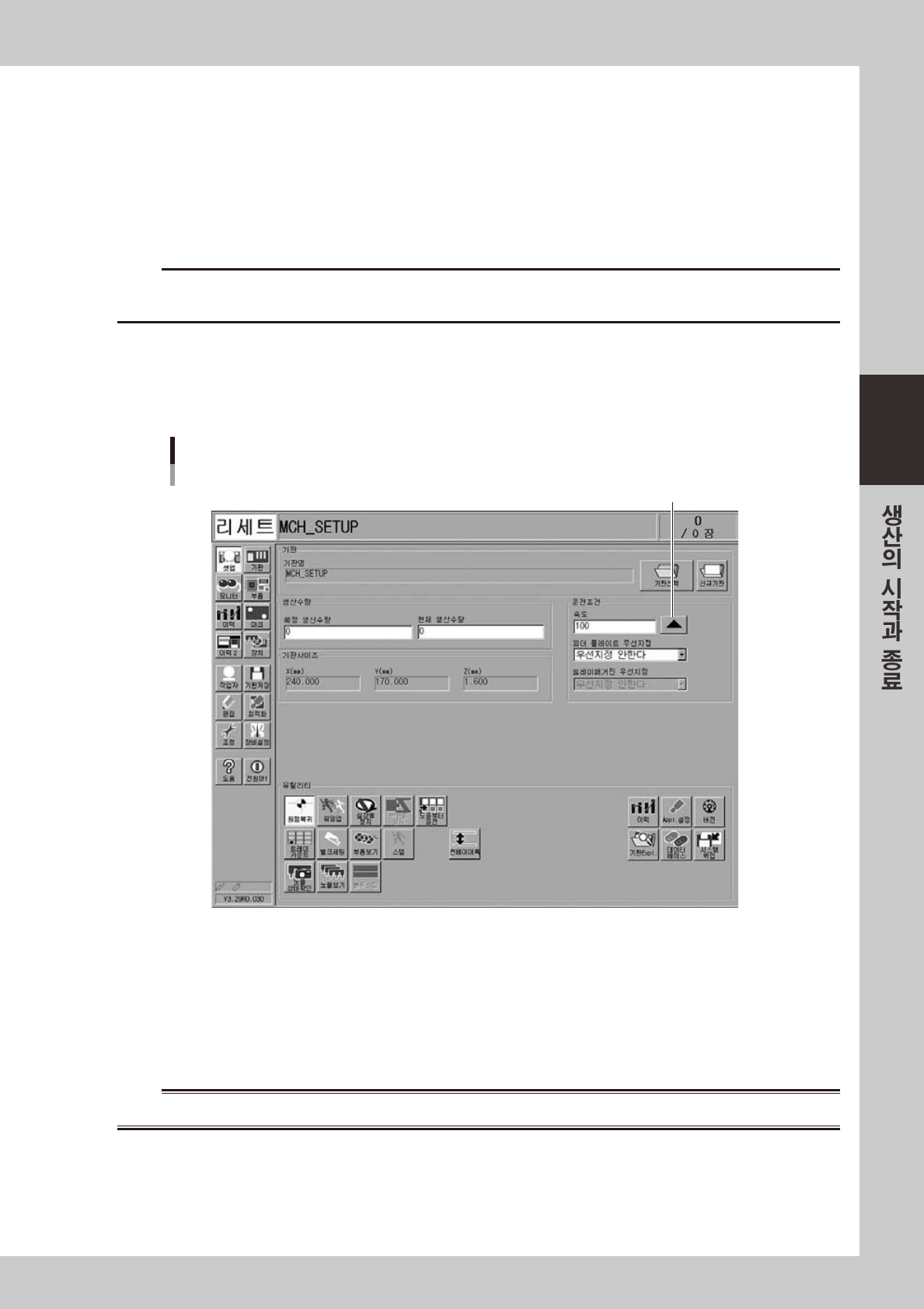 운전조건의「속도」에는현재설정되어있는운전속도가표시되어있습니다 .운전속도를변경하고자할