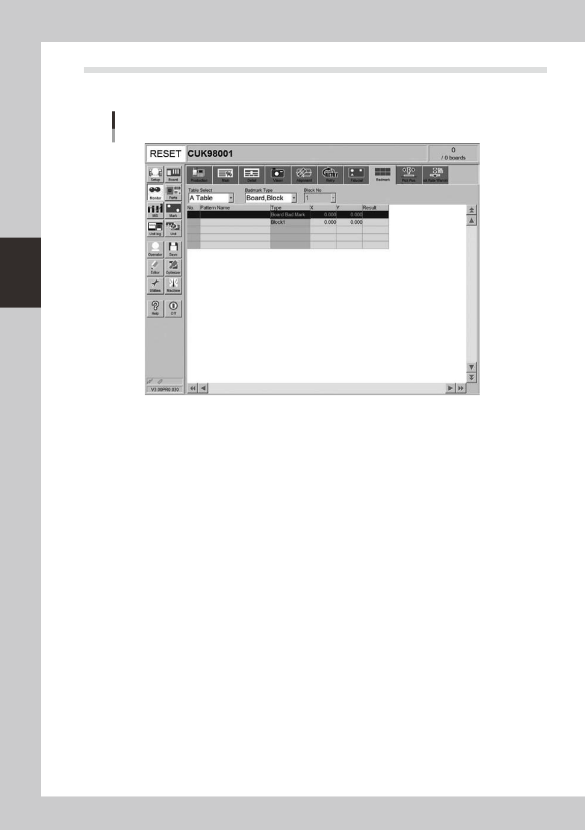 The [Badmark] tab screen shows the recognition results of badmarks such as "Board, Block" and "Local"