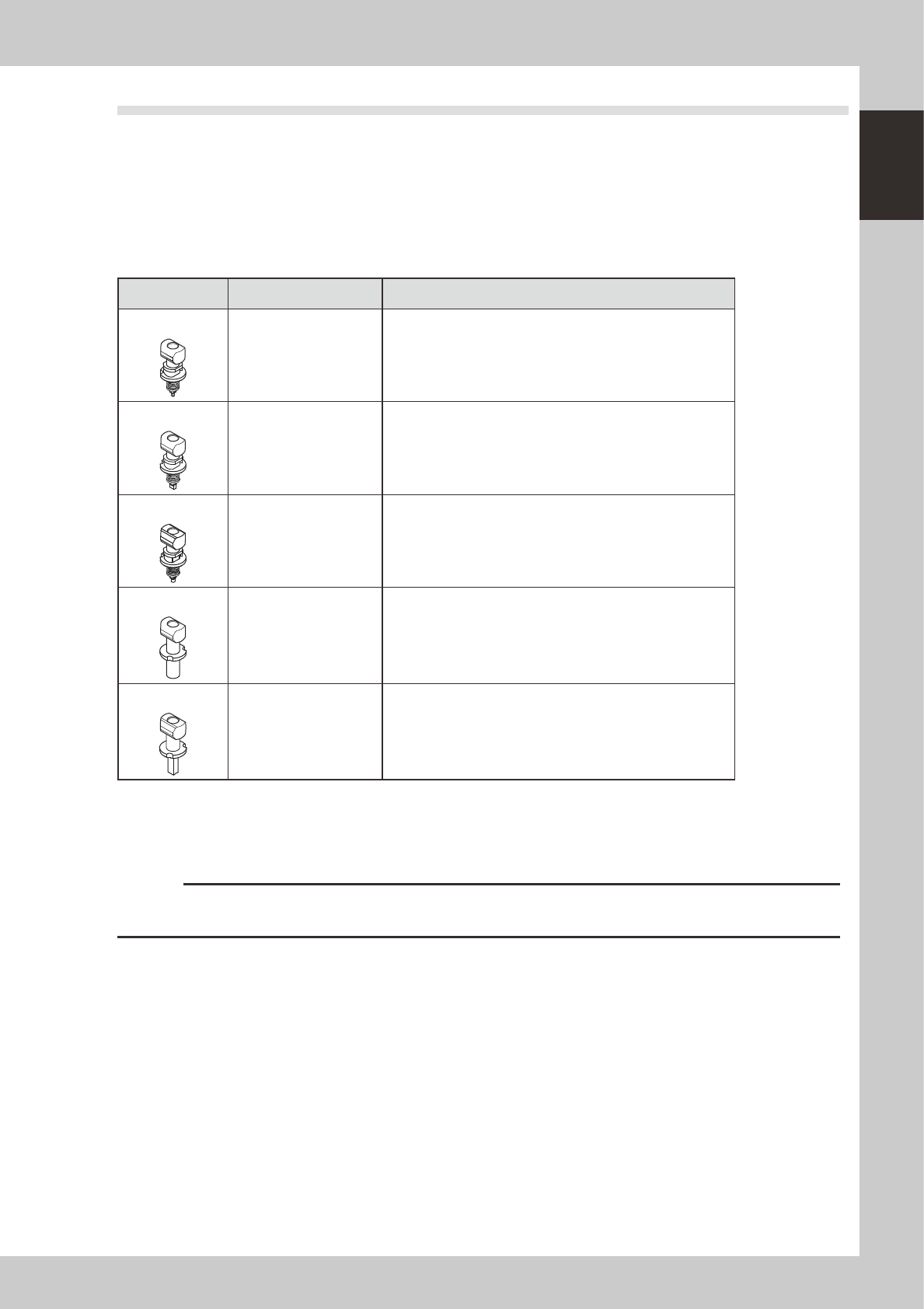 1-7 1 Part names and functions 3 . 2 N o z z l e t y p e s T o e n s u r e s t a b l e c o m p o n e n t p i c k u p , t h e c o r r e c t n o z z l e t h a t m a t c h e s t h e c o m p o n e n t m u s t b e u s e d . T…