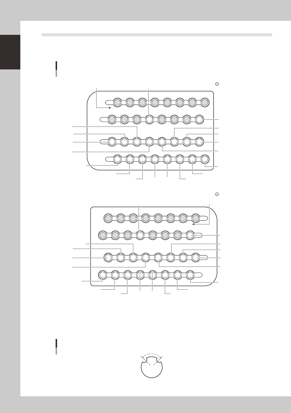 The drawings below show the nozzle station No. and the allotted head No. and mating nozzle type.